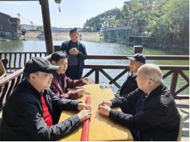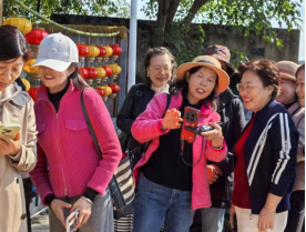 金秋十月,桃花岭上橙黄橘绿,农家院内笑语盈盈。大好秋色里,老同志们三三两两结伴,在青山绿水间散步、摄影、交谈,暖阳照耀下心情十分愉悦。